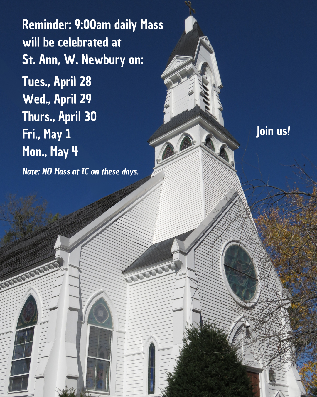 Note: NO Mass at IC on these days.