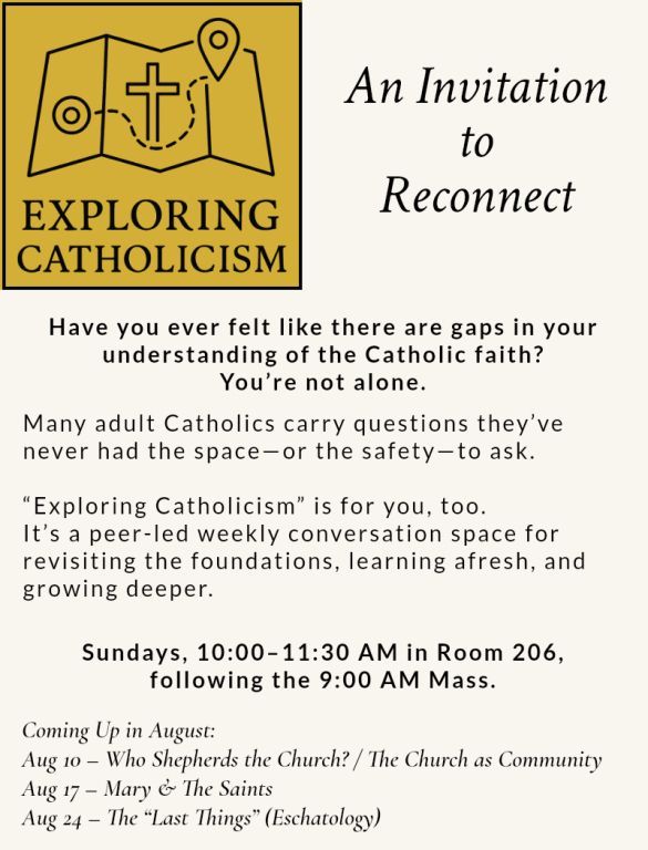 We would love to hear from you and to help you on your faith journey. The Director of Lifelong Faith Formation, Aaron Giard, is available to meet or talk over the phone about this process. Please call